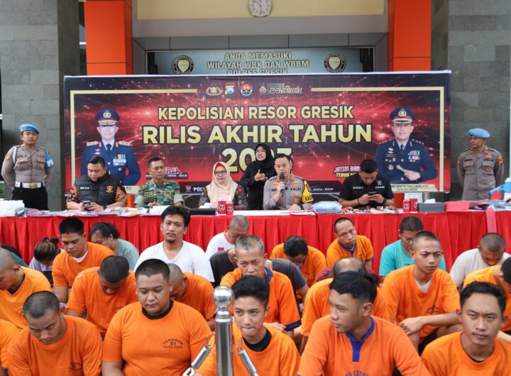 GRESIK – Kapolres Gresik AKBP Adhitya Panji Anom bersama Forkopimda menggelar press release akhir tahun 2023 yang...