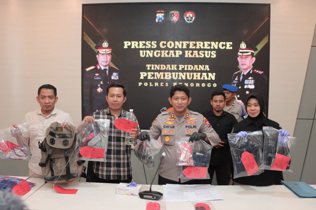 Kapolres Ponorogo AKBP Catur C. Wibowo, S.I.K., M.H. saat konferensi press Rabu (22/02/2023) menyampaikan bahwa pelaku tak lain merupakan kekasih korban.