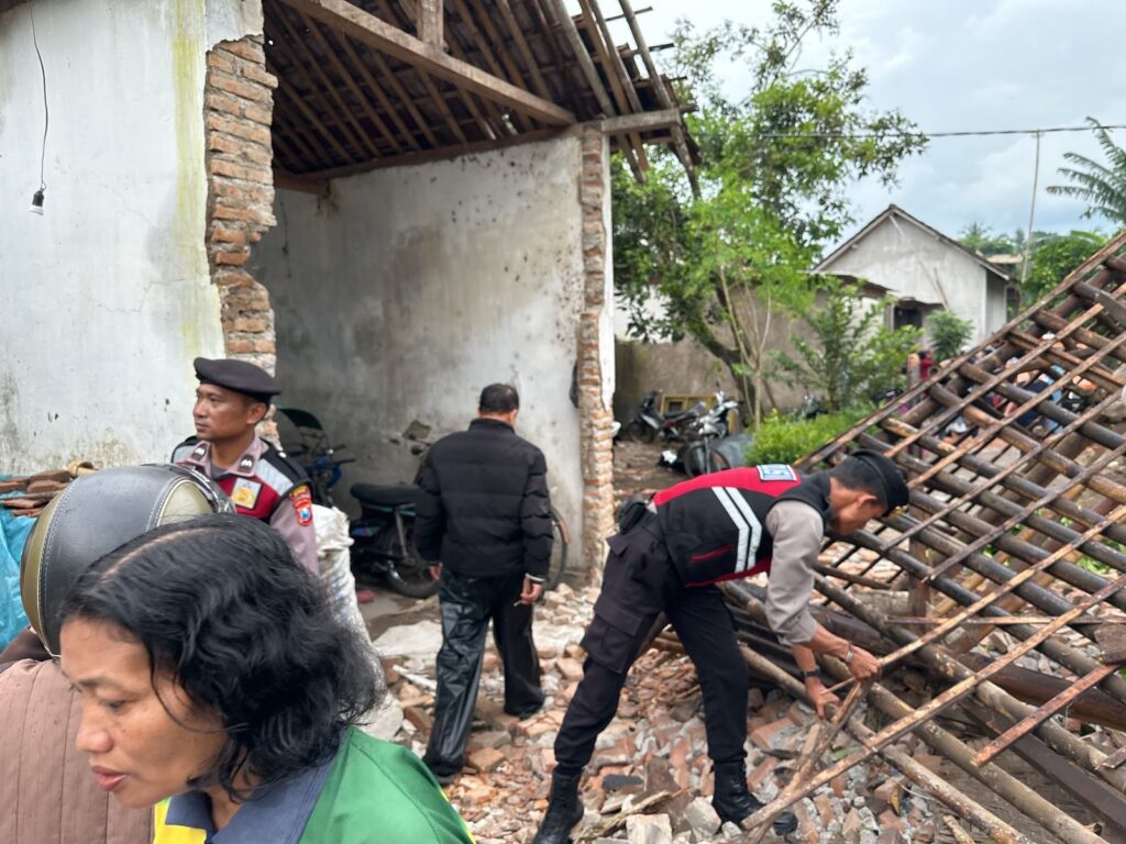 Jember – Polres Jember menerjunkan puluhan personel untuk membantu penanganan bencana Angin puting beliung yang terjadi pada Senin (27/2) sekitar pukul 15.15 WIB di wilayah Dusun Langsatan, Desa Sukamakmur, Kecamatan Ajung, Kabupaten Jember.