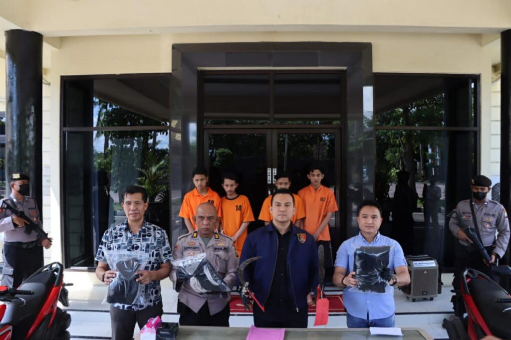 “Kami telah menangkap 5 orang inisial RA (21), SA (18), AE (23), MA (18) warga Nganjuk dan FA (19) warga Surabaya, bersama barang buktinya 1 bilah clurit, 1 bilah golok dan 2 unit sepeda motor,” kata AKP I Gusti.