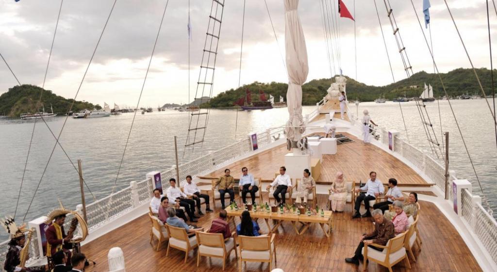 Selepas berbincag-bincang, para pemimpin beserta para pendampingnya menuju Marina Labuan Bajo untuk kemudian menaiki kapal pinisi Lako Di’a. Mereka akan berlayar untuk menikmati keindahan matahari terbenam di Labuan Bajo.