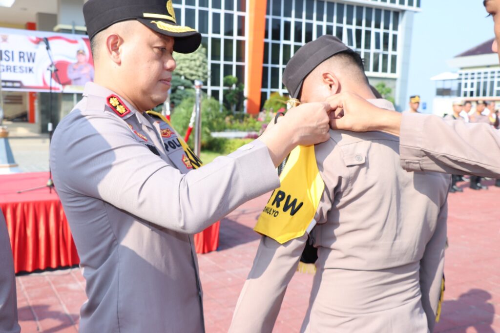 GRESIK-Kapolres Gresik AKBP Adhitya Panji Anom memimpin Apel gelar Polisi RW di lapangan Mapolres Gresik. Senin (22-05-2023). Tujuannya dalam rangka mendukung program Kapolri jenderal Pol Drs.Listyo Sigit Prabowo tentang Polisi RW untuk mendekatkan antara polisi dan masyarakat dengan tujuan memaksimalkan anggota hadir dan berada bersama masyarakat.