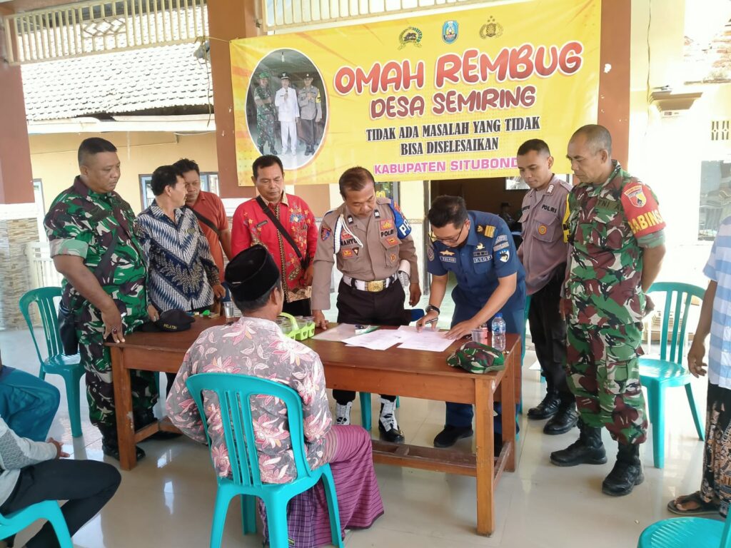 Mediasi digelar di Omah Rembuk Balai Desa Semiring melibatkan Babinsa Semiring dan Tanjung Kamal, Kepala Dusun Semiring barat, Ketua RW Dusun Semiring, KA Wilker Kalbut Wil KSOP Panarukan Hari Nanang Wicaksono, Satpol PP dan anggota Satpolairud Polres Situbondo.