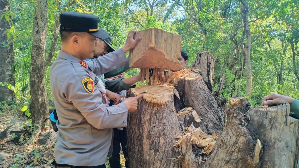 Selain itu, personel Polsek Asembagus bersama Polhut Taman Nasional Baluran melakukan kroscek tunggak di Taman Nasional Baluran untuk memastikan kayu tersebut berasal.