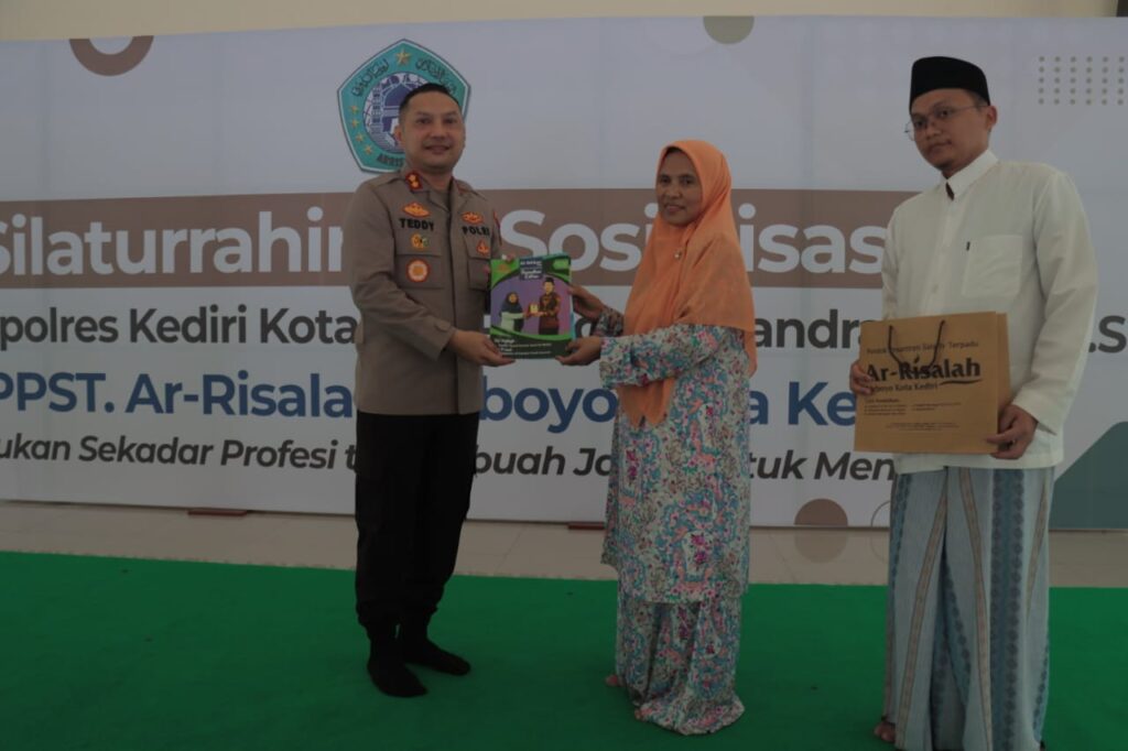 Kegiatan silaturahmi dilanjutkan sosialisasi dihadiri langsung oleh Kapolres Kediri Kota AKBP Teddy Chandra, S.I.K., M.Si. didampingi PJU dan ikut serta Latja Taruna AKPOL tingkat ll (Dua), Pengasuh Ponpes Terpadu Ar Risalah dan Santriwan santriwati