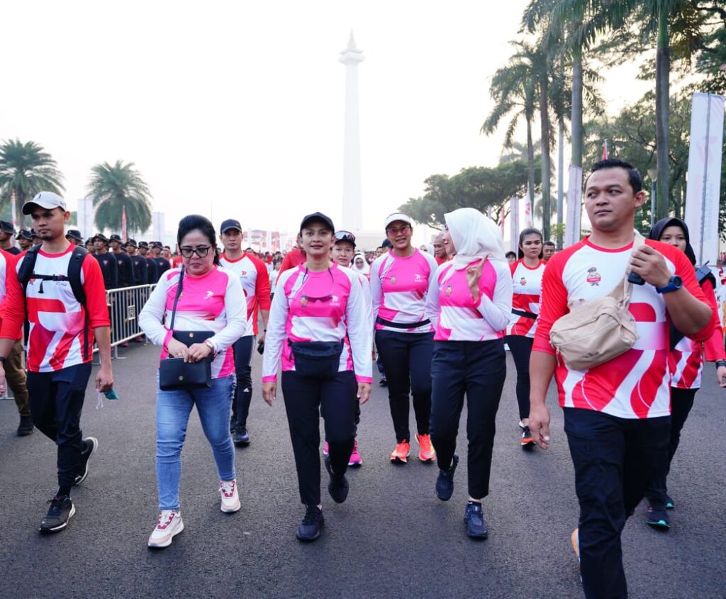 Jakarta – Kapolri Jenderal Listyo Sigit Prabowo menghadiri kegiatan Fun Walk dalam rangka memperingati Hari Bhayangkara ke-77 di Lapangan Monas, Jakarta Pusat, Minggu, 25 Juni 2023.