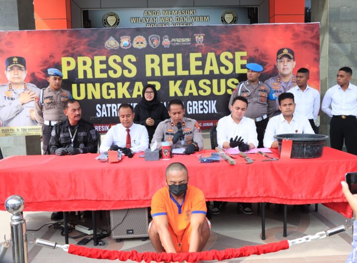 Gresik – MKU (28 th) seorang pria yang melakukan pencabulan kepada anaktirinya NA (13 th) diamankan Unit...
