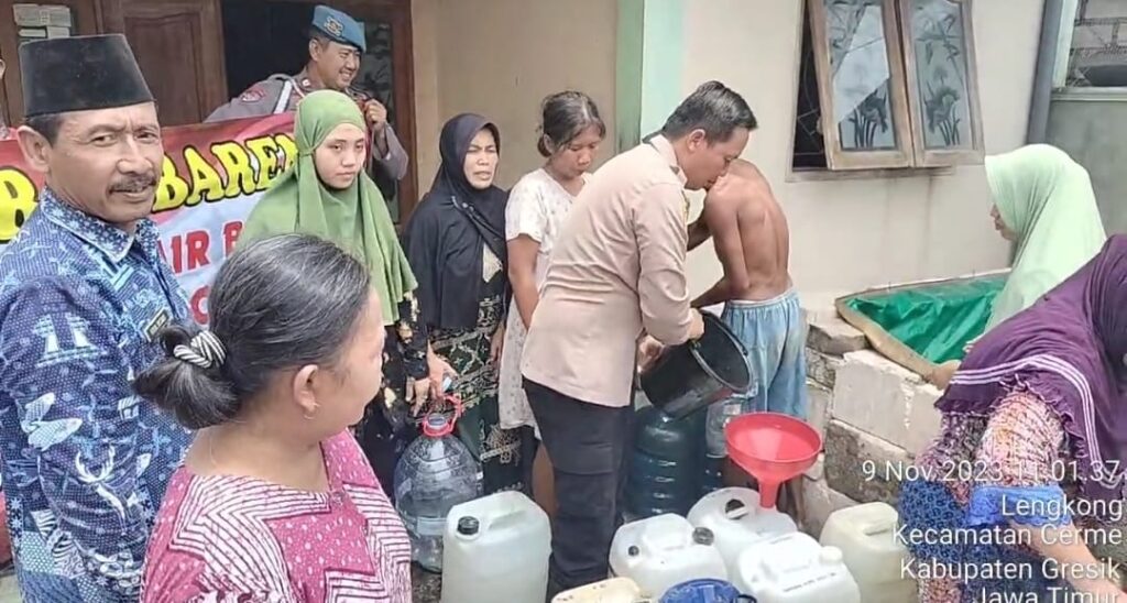 “Dengan meringankan beban hidup warga masyarakat Kabupaten Gresik khususnya di Kecamatan Cerme merupakan bentuk kepedulian Polri terhadap warga yang membutuhkan dan mengalami kesulitan air bersih di musim kemarau,” Ucap Kapolsek Cerme