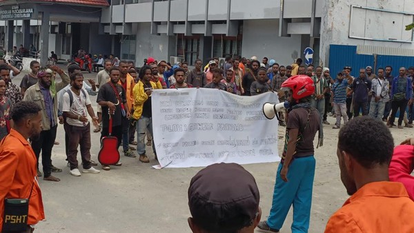 Jakarta – Sejumlah mahasiswa Universitas Cenderawasih (Uncen) Papua menggelar aksi penolakan kepada capres nomor urut 3 Ganjar...