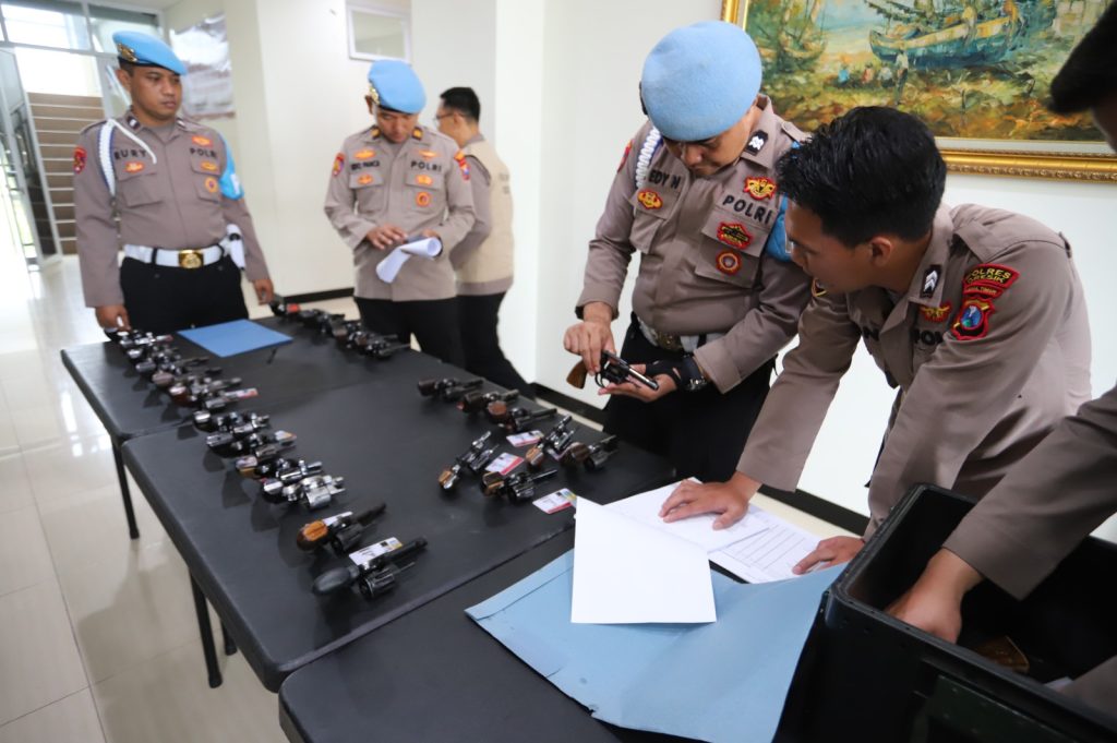 Dalam kegiatan ini, sebanyak 27 senjata api laras pendek diperiksa satu per satu guna memastikan kelayakan serta kepemilikan senjata sesuai prosedur yang berlaku. Pengecekan senpi ini dilakukan secara berkala sebagai bentuk pengawasan internal guna mencegah penyalahgunaan dan memastikan kesiapan personel di lapangan.