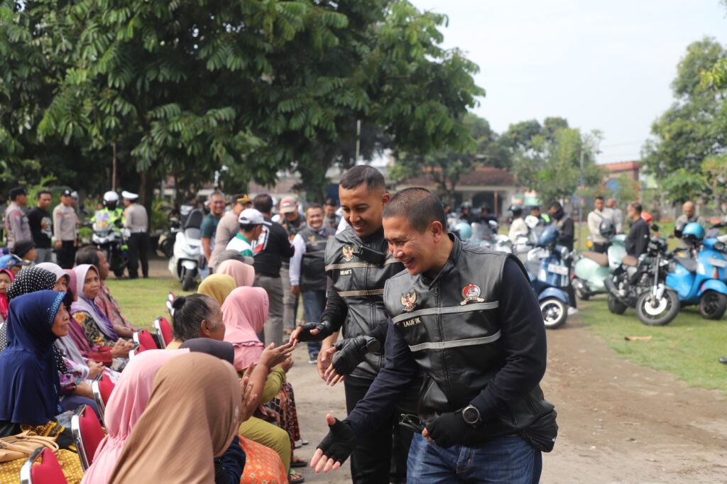 Tanpa seremoni panjang, para peserta social riding langsung turun tangan membagikan ratusan paket sembako kepada warga yang telah menunggu.