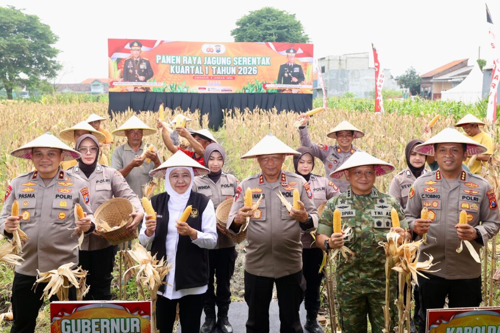 SIDOARJO – Kepolisian Daerah Jawa Timur menggelar Panen Raya Jagung Serentak Kuartal IV Tahun 2025–2026 sebagai wujud dukungan terhadap program Swasembada Pangan Nasional.